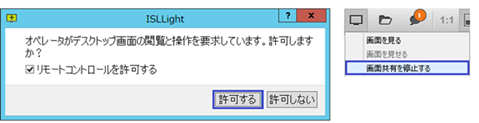 接続先が「許可」して初めて画面共有を開始する確認機能や、クリックですぐに共有をキャンセルする「取消」機能など、操作時のセキュリティも確保。操作されるユーザーの不安を解消します。 |