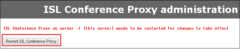 10. アップデートが完了すると、画面上部に[Restart ISL Conference Proxy]のボタンが表示されます。ボタンをクリックすると、ISL Conference Proxyの再起動を開始します。