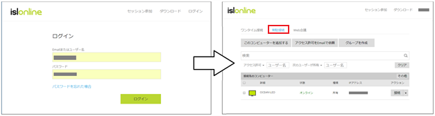 これまでISL AlwaysOnの「マイコンピューター」から常駐接続を行っていた方は、「ISL Light」の「常駐接続」タブから接続を行ってください。ISL Lightを使用した場合、以下の便利な機能がご利用いただけます。